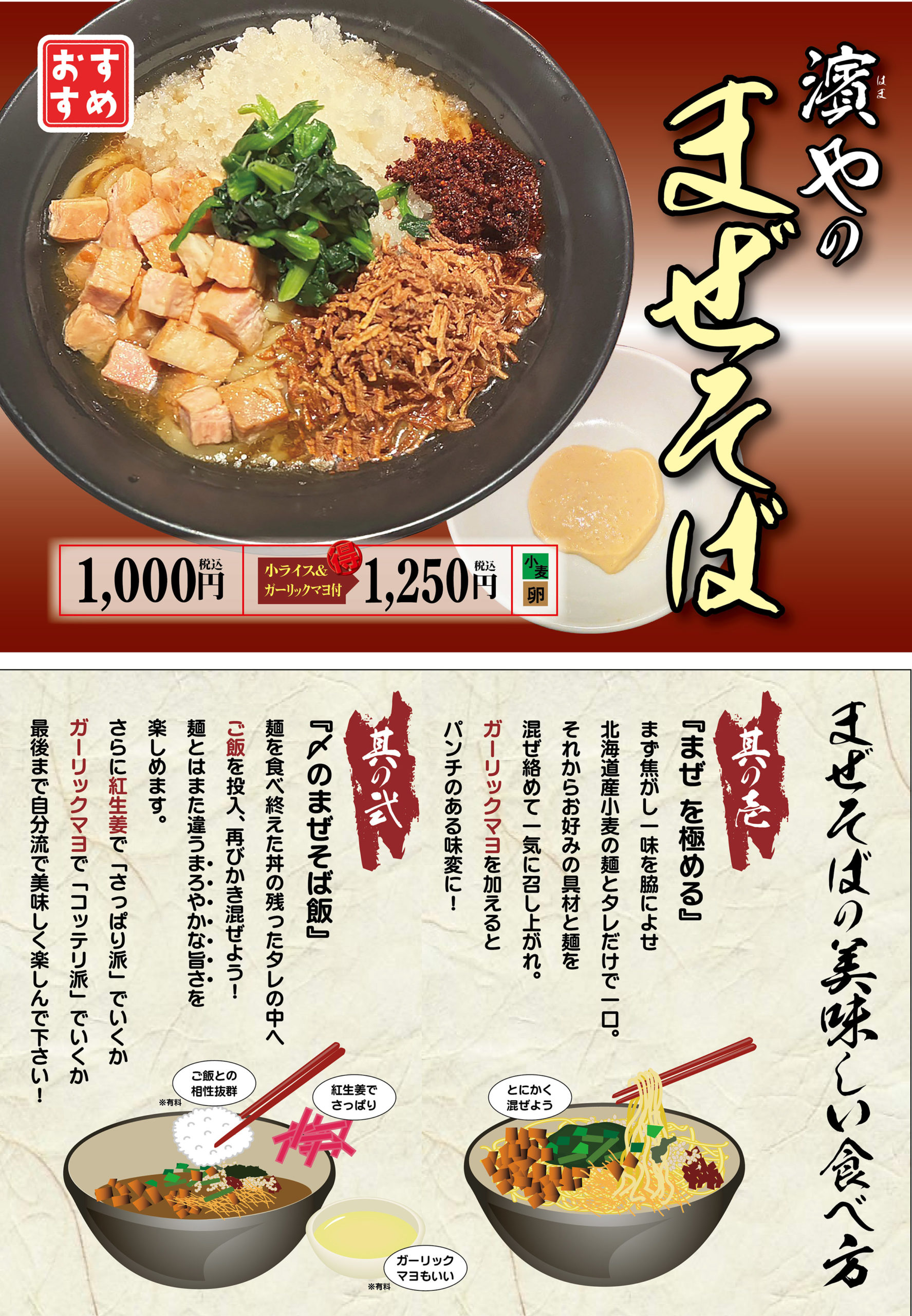 このたび、都筑インター店・こどもの国店・大和店・新羽店 の4店舗にて、『横濱家のまぜそば』を販売予定 となりました。